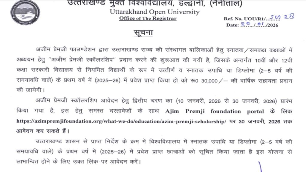 Azim Premji Scholarship Yojana अजीम प्रेमजी स्कॉलरशिप प्रति वर्ष 30,000 रुपये की वित्तीय सहायता अजीम प्रेमजी स्कॉलरशिप 2026: लड़कियों के